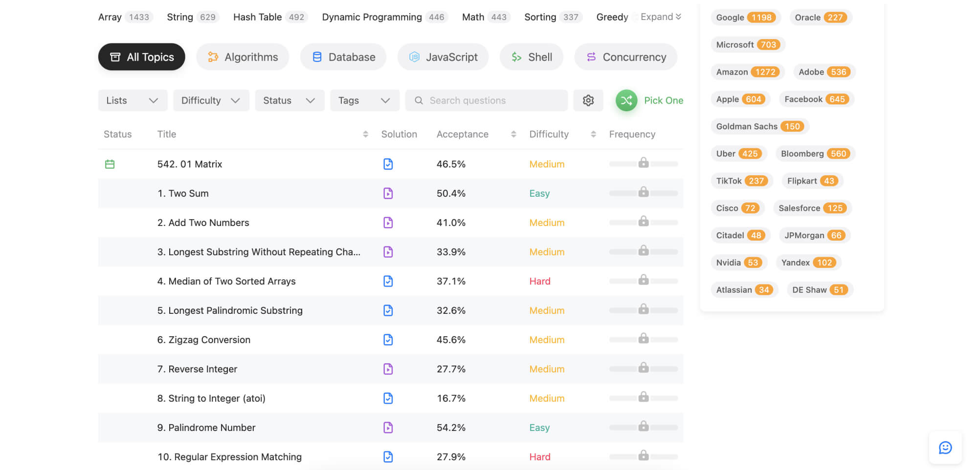 LeetCode is an online platform for algorithmic programming tasks that prepares you for technical interviews. Regular use over 6–12 months can significantly increase your chances of landing a job in big tech companies. It primarily trains you to think quickly when coding, formulate clarifying questions for clients and colleagues, and provides interview questions and answers in 14 popular programming languages at different difficulty levels. Check the Beginner’s Guide in the Explore section to learn more.