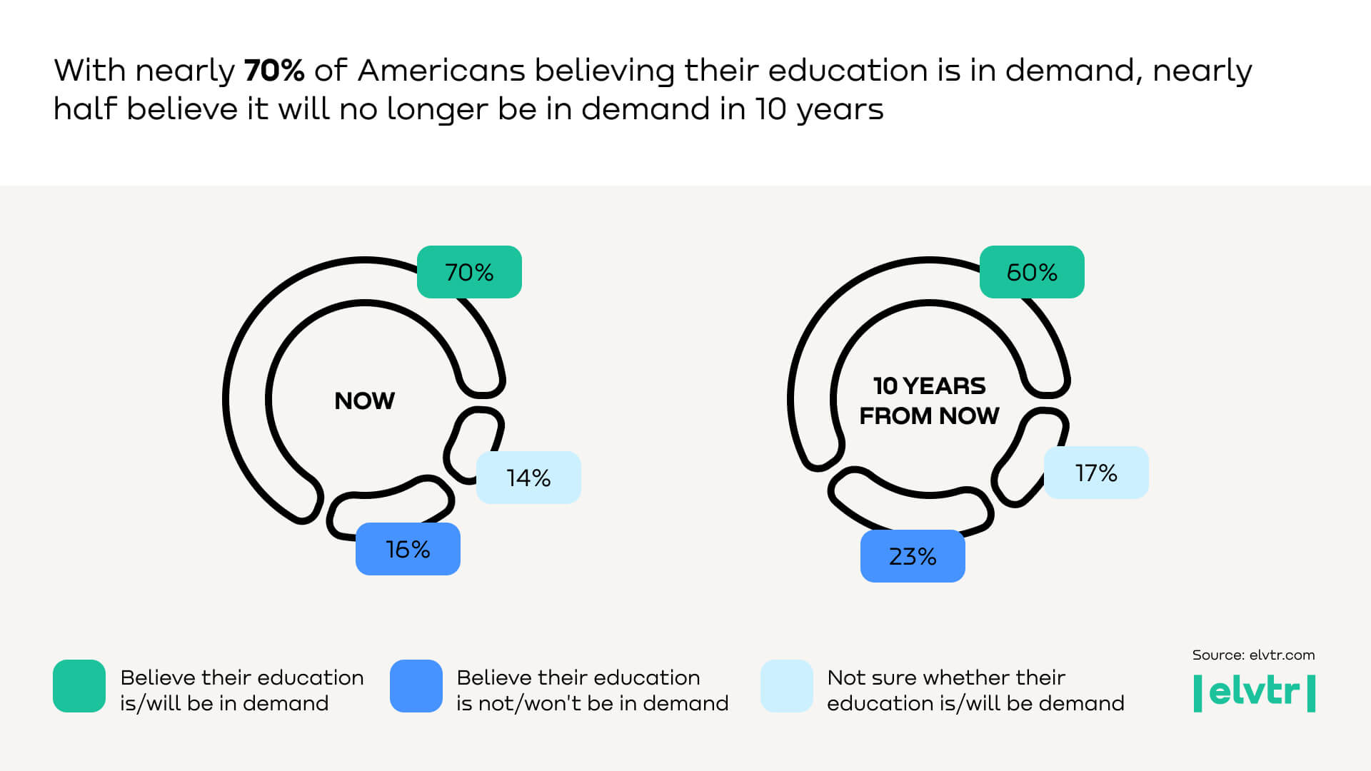 As well as the financial issues, concerns over long-term opportunities likely contribute to this regret, with many on the fence about their future prospects. While 70% believe their education is still in demand, almost half doubt this will still be the case in a decade.
