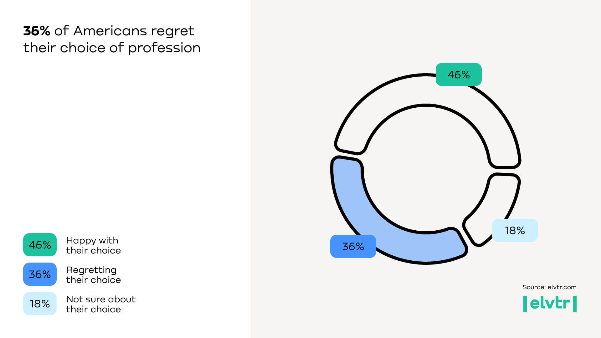 Unsurprisingly, given these concerns over cost and longevity, Americans are divided on whether they choose the right profession. Some 36% say they regret their choice, while 18% remain uncertain.