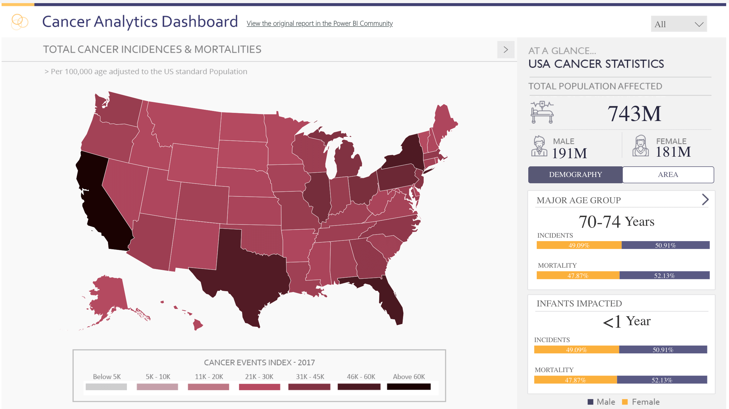 - Geographical visualizations. It provides specialized charts for visualizing geographical data, such as maps and geocharts.