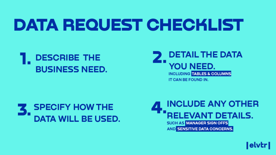 In addition, you should do your “research. Consider which table(s) you are requesting access to, or even more specifically, which columns”. This makes it much easier for Admin to find the data in potentially vast databases.