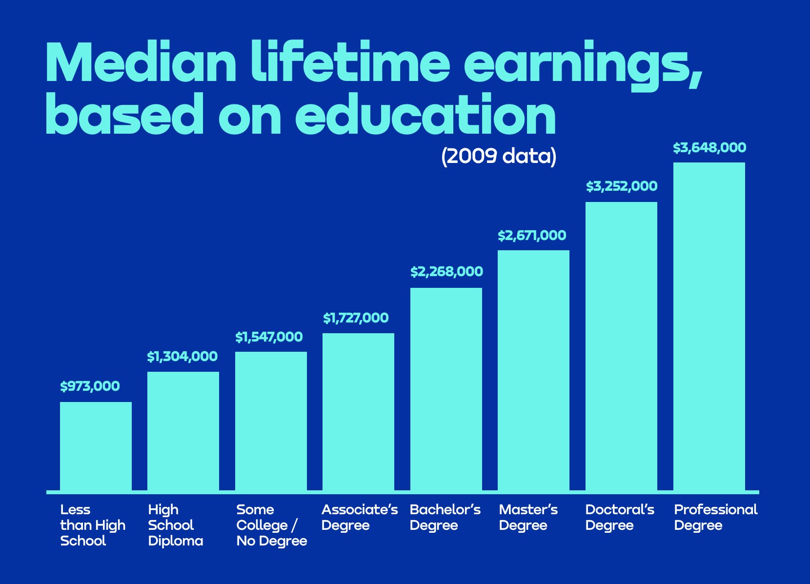 Back in 2009, Georgetown University concluded that those who have “some college” under their belt, make $1,547,000 in their lifetime.