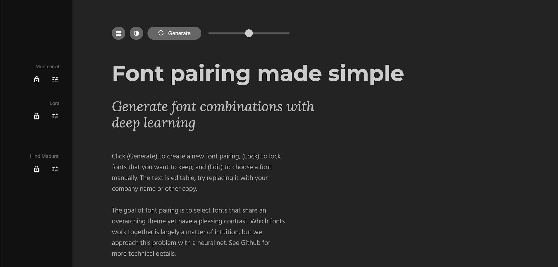 - FontJoy is a web-based tool that generates font combinations based on user preferences. It uses artificial intelligence algorithms to suggest font pairings that complement each other, allowing designers to quickly find typography options for their projects.